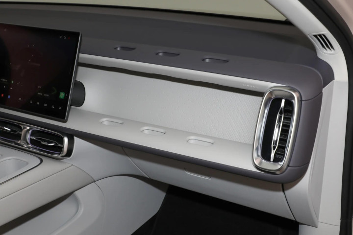 最有趣的设计在副驾驶前方——6个看似简单的孔洞,官方称之为“魔术拓展坞”。你可以安装手机支架、化妆台甚至折叠小桌板。一位车主分享,装上折叠桌板后,孩子在车上放绘本、零食都特别方便。