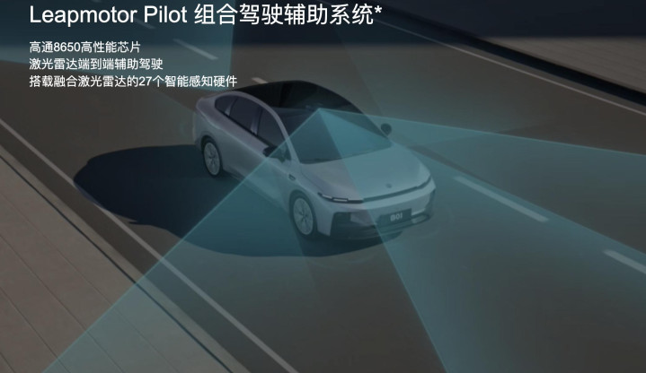 关于辅助驾驶功能,不同版本的B01配置差异较大,但值得注意的是,它的顶配和次顶配版本搭载了激光雷达和高通8650辅助驾驶芯片。换句话说,它为预算有限但又想体验高阶辅助驾驶功能的用户,提供了一个难得的选择。